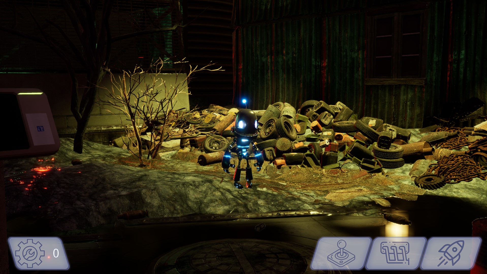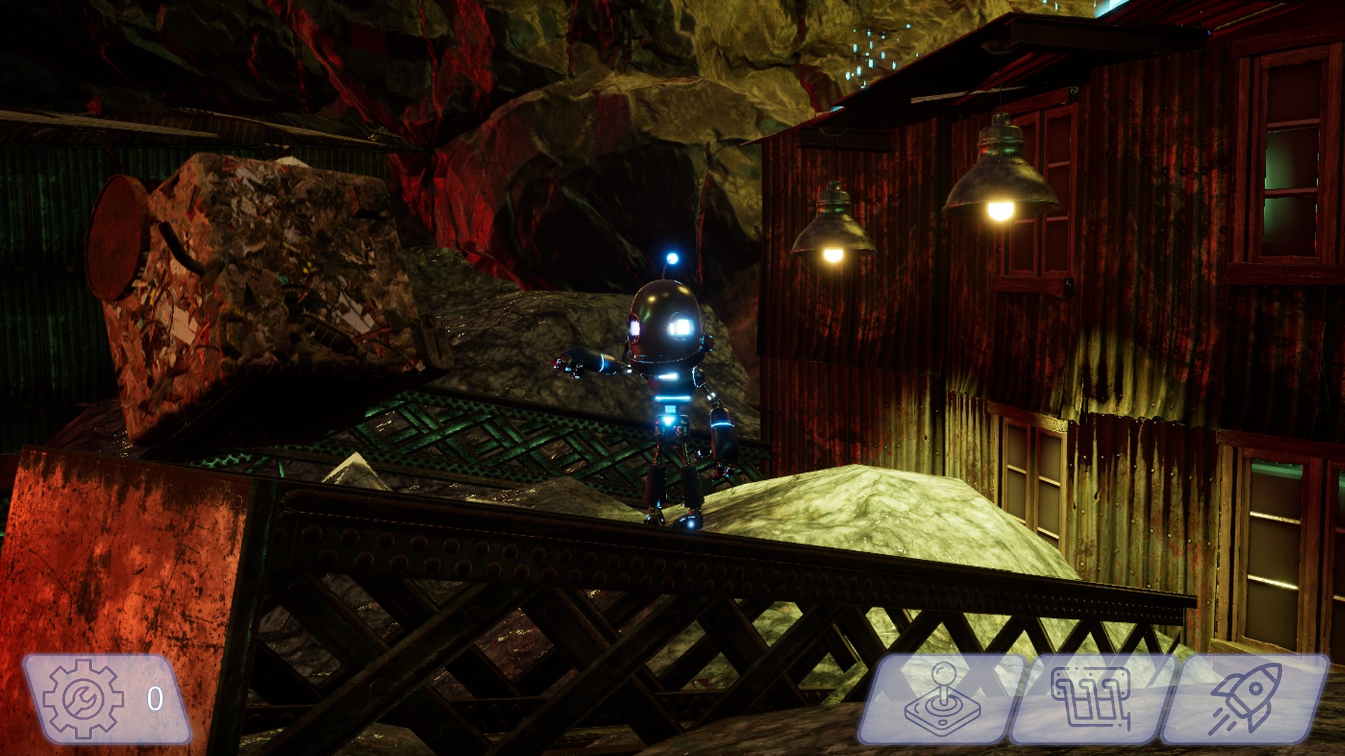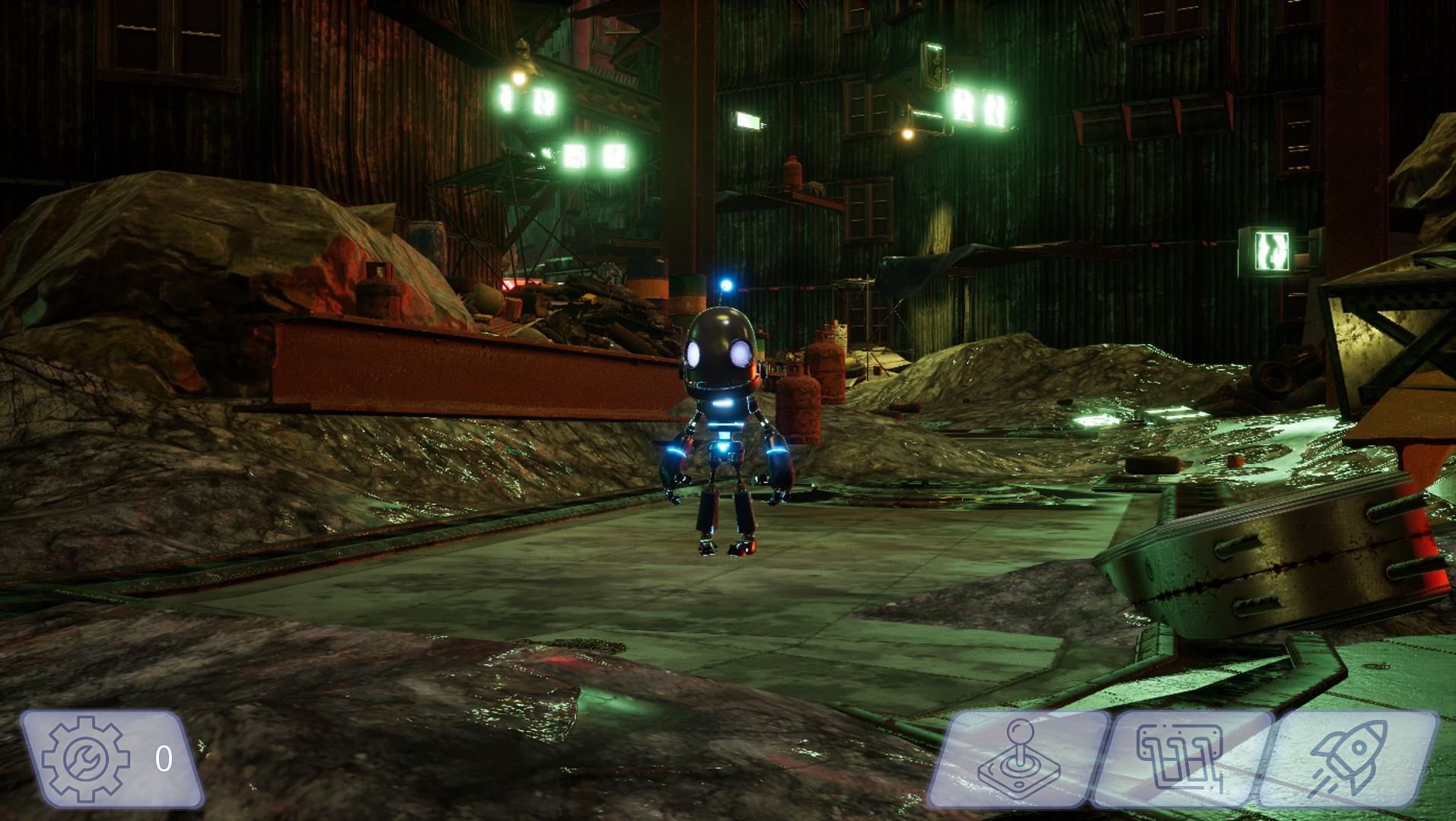 An alien robot has crashed in a junkyard. Help him reassemble the parts of his ship by crafting blocks from scrap to build a path and solving puzzles.